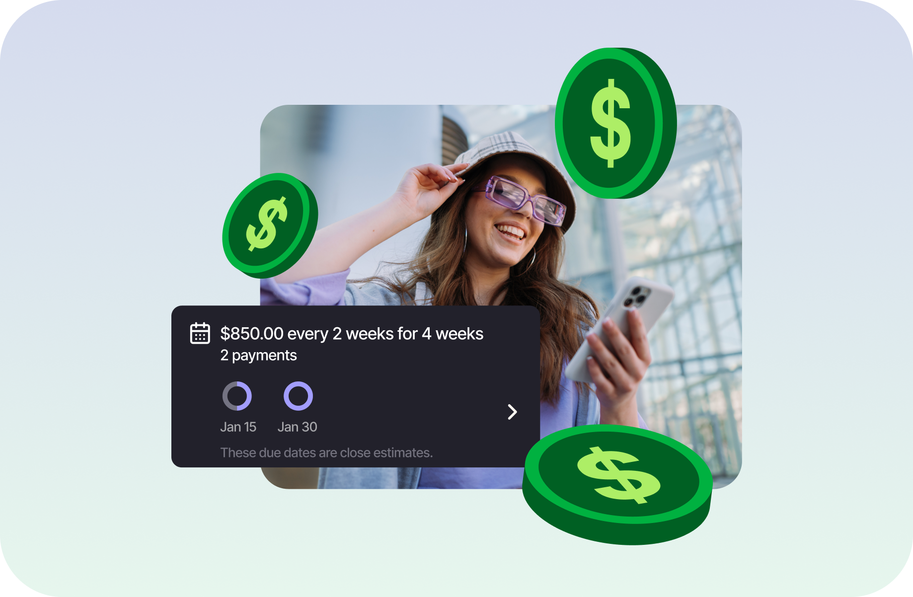 - Esusu Split Pay: Pay a portion upfront and spread the rest over the following weeks.